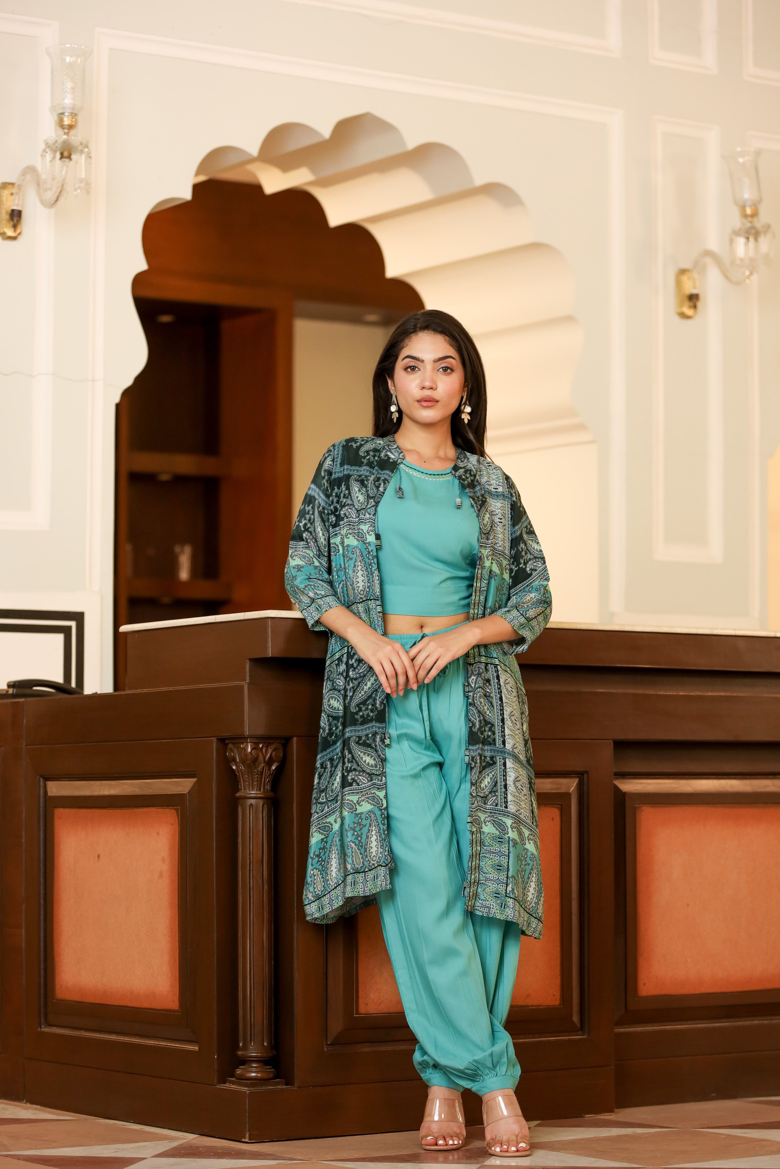 Fabric: Jacket -Muslin, Top and pants - Rayon